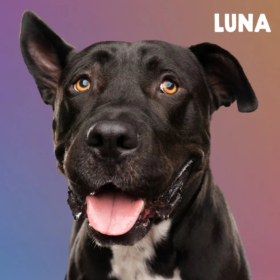 Luna is a lovable goofball with golden eyes and a heart full of sunshine. Her happy smile, floppy ear, and endlessly wagging tail say it all—she’s a friend to everyone she meets. Whether it’s playtime in the yard or cuddle time on the couch, Luna is just happy to be included. She’s smart, eager to please, and ready to find her forever home.
